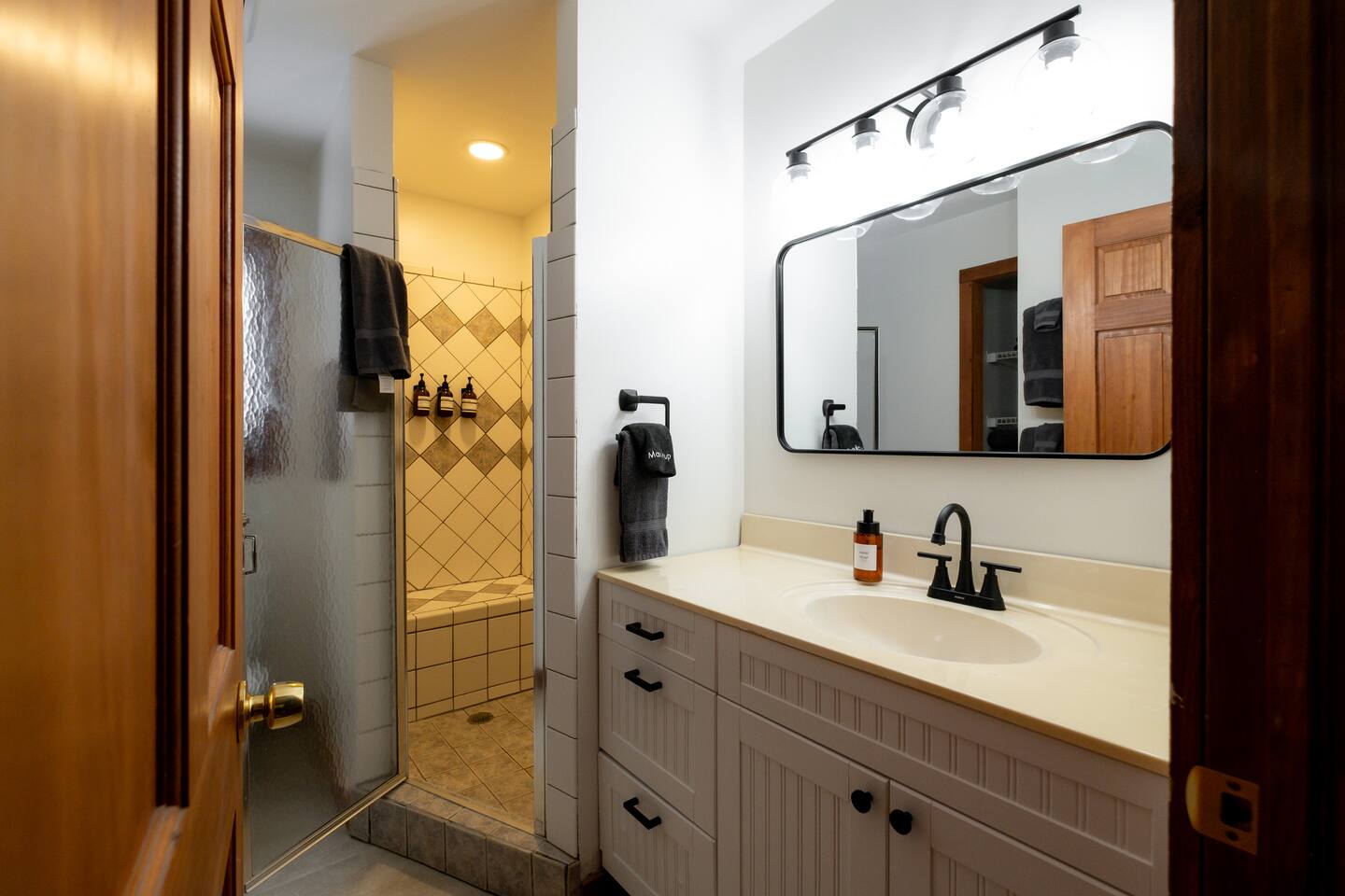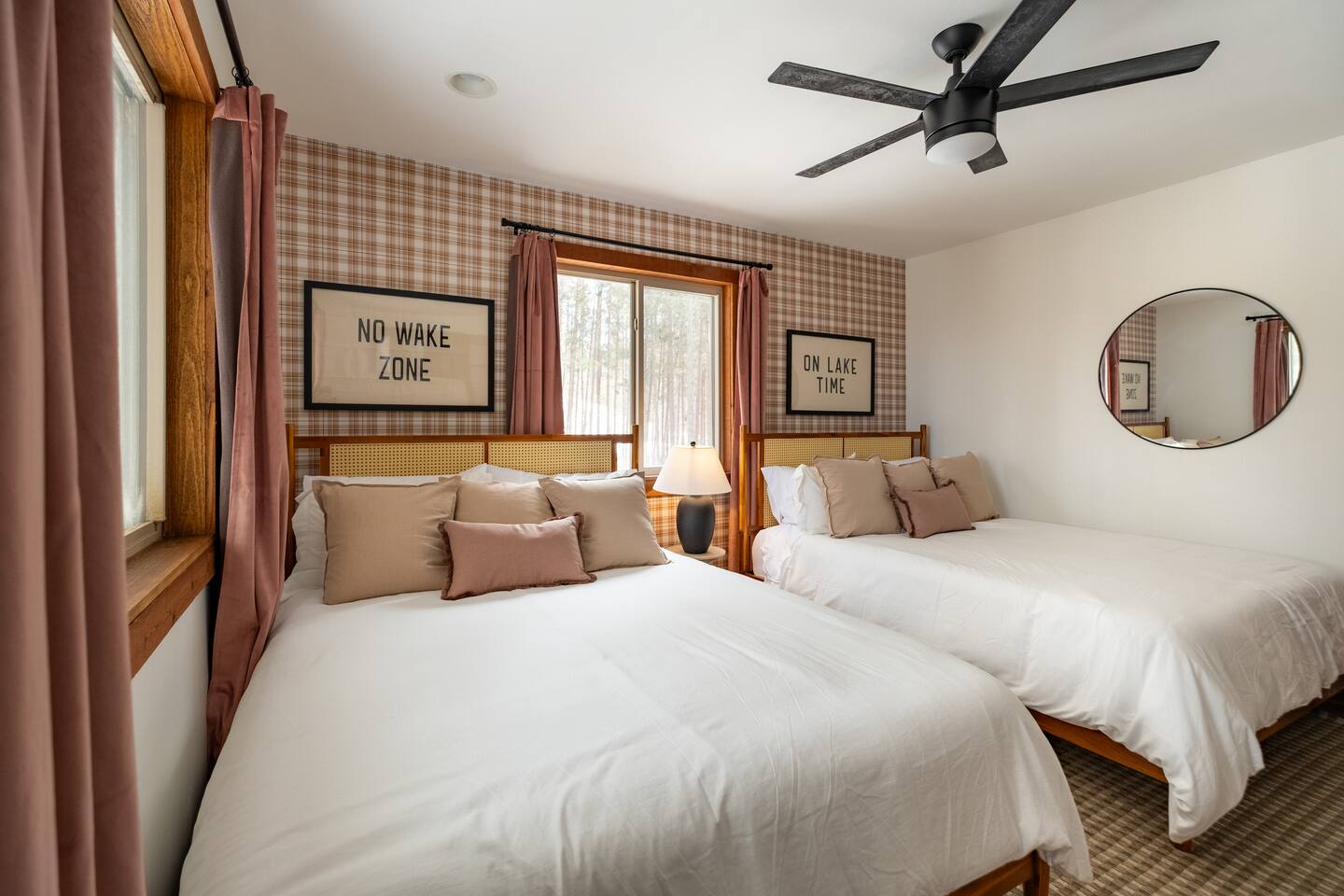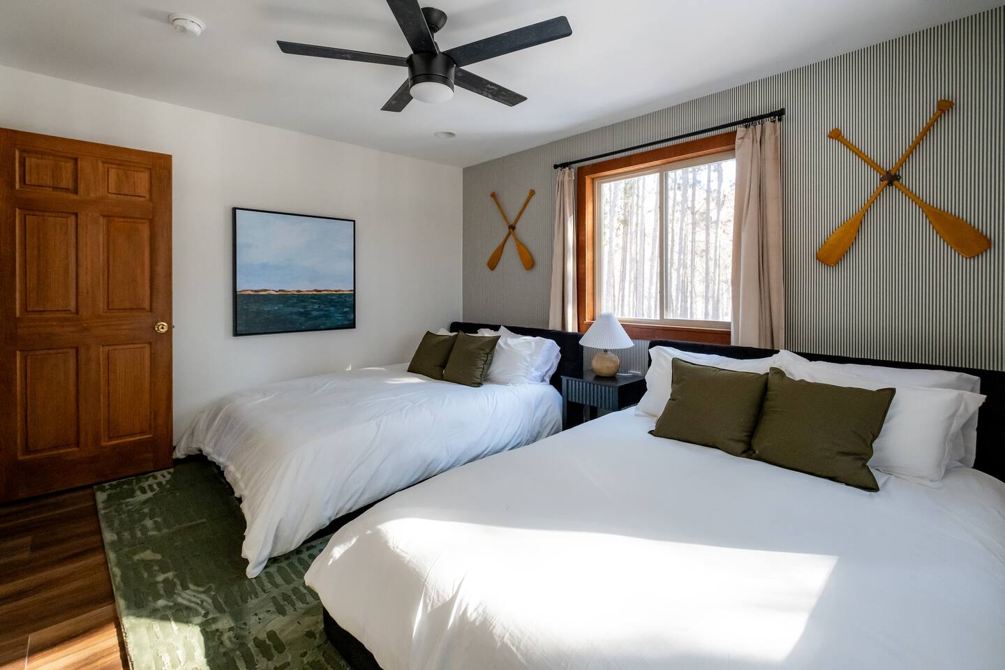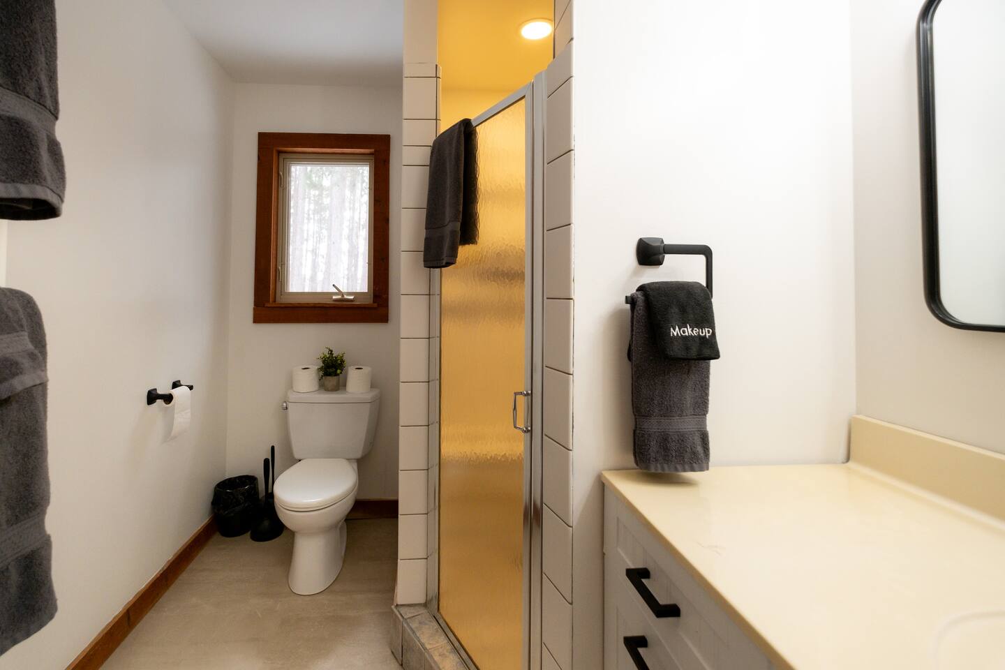 KEY FEATURES ⭐️ Modern & Rustic Charm: Thoughtfully renovated 4-bedroom cabin (1 King, 5 Queens), blending contemporary comfort with rustic appeal. ⭐️ Sleeps 12 comfortably in beds, optional up to 14 with the sleeper sofa. ⭐️ Family & Pet Friendly: Pack ’n Play available; well-behaved dogs welcome. ⭐️ Chef’s Kitchen: Fully equipped kitchen with gas range oven, full cookware set, air fryer microwave, toaster, full-size fridge with filtered water/ice dispenser, Ninja blender, a Keurig machine (grounds & K-Cups), and Cosori kettle. INSIDE THE CABIN 🛏 Bedrooms & Baths: 4 bedrooms (1 King, 5 Queens) + optional sleeper sofa. Three full baths—one with a tub/shower combo and two with stand-up showers—stocked with hair dryers, shampoo, conditioner, and body wash. 🔥 Cozy Fireplaces: Two inviting fireplaces (one wood burning, one electric) set the perfect ambiance in separate living areas. ENTERTAINMENT & LEISURE 🎬 Hidden Speakeasy: 100" movie screen and popcorn machine for epic movie nights 🎤 Karaoke lounge: Belt out your favorite tunes ⛳️ High-Tech Golf Simulator: Tee up indoors, rain or shine 🍻 Sports-Themed Bar: Featuring bar seating, a 65" TV, and a cozy electric fireplace, plus a pool table, sleeper sofa, and a giant bean bag chair. 🕹 Games Galore: Poker table, PacMan, Buck Hunter, air hockey, plus board games & cards 📺 5 Smart TVs: Stream your favorites, including on the 100" theater screen 🎶 Record Player: Enjoy classic vinyl vibes OUTDOOR LIVING 🌲 Multiple Lounging Areas: Perfect for alfresco dining and relaxation, including sectional and dining table that seats up to 12. 🔥 Two Fire Pits: A gas fire pit on the upper deck + a wood-burning fire pit in the yard (complete with Adirondack chairs and doubles as a grill. BYO firewood!) 🍔 4-Burner Gas Grill: Perfect for BBQ feasts 🧖♀️ Hot Tub & Sauna: Unwind indoors or out 🎯 Outdoor Games: Bags, ladder toss and giant Connect-4 TECH & HOUSE EXTRAS ⚡️ Spectrum Fiber WiFi: 1-Gig ultra fast, reliable high speed internet for streaming and remote work 🧺 Laundry: Washer & dryer WHAT WE PROVIDE • Fresh linens & towel sets • Starter coffee kit (K-Cups, small jar of grounds, filters, sugar) and complimentary assortment of teas • Cooking essentials (oils, spices, salt & pepper), mixing bowls, measuring cups and spoons, Tupperware, utensils, dinner ware, cocktail set, bakeware, foil, plastic wrap, ziplock bags in various sizes • 3 rolls of TP/bathroom, 2 rolls of paper towels, garbage bags, dishwasher pods, dish soap and sponge • Hand soap, shampoo, conditioner, shower gel • Luggage Racks & Hangers for convenient unpacking YEAR-ROUND DESTINATION 🌞 Summer: Enjoy boating, swimming, and water sports on pristine Torch Lake, just minutes away. Perfect for beach days and lakeside adventures. 🍁 Fall: Experience breathtaking autumn foliage, visit nearby apple orchards and cider mills, and explore scenic hiking trails as the colors change. ❄️ Winter: Just a short drive to top ski resorts including Shanty Creek and Boyne Mountain. Ideal for skiing, snowboarding, and cozy cabin retreats after a day on the slopes. 🌷 Spring: Witness Northern Michigan's beautiful wildflower blooms, enjoy early-season fishing, explore uncrowded hiking trails, and visit local farmers markets as they open for the season. We can't wait to welcome you to your home away from home. The Wild Pine at Torch Lake is the ideal basecamp for exploring Northern Michigan's breathtaking nature trails, crystal-clear Torch Lake waters, acclaimed local wineries, and charming small towns — or simply staying in to enjoy quality time with family and friends in our amenity-packed retreat. 🍂 FALL & WINTER GETAWAY AWAITS! ❄️ Discover The Wild Pine this season—where crisp autumn hikes and colorful foliage give way to snowy ski days and cozy nights by the fire. Whether you’re carving slopes nearby, soaking in the hot tub under the stars, or unwinding in the sauna, our modern cabin is your perfect year-round retreat.